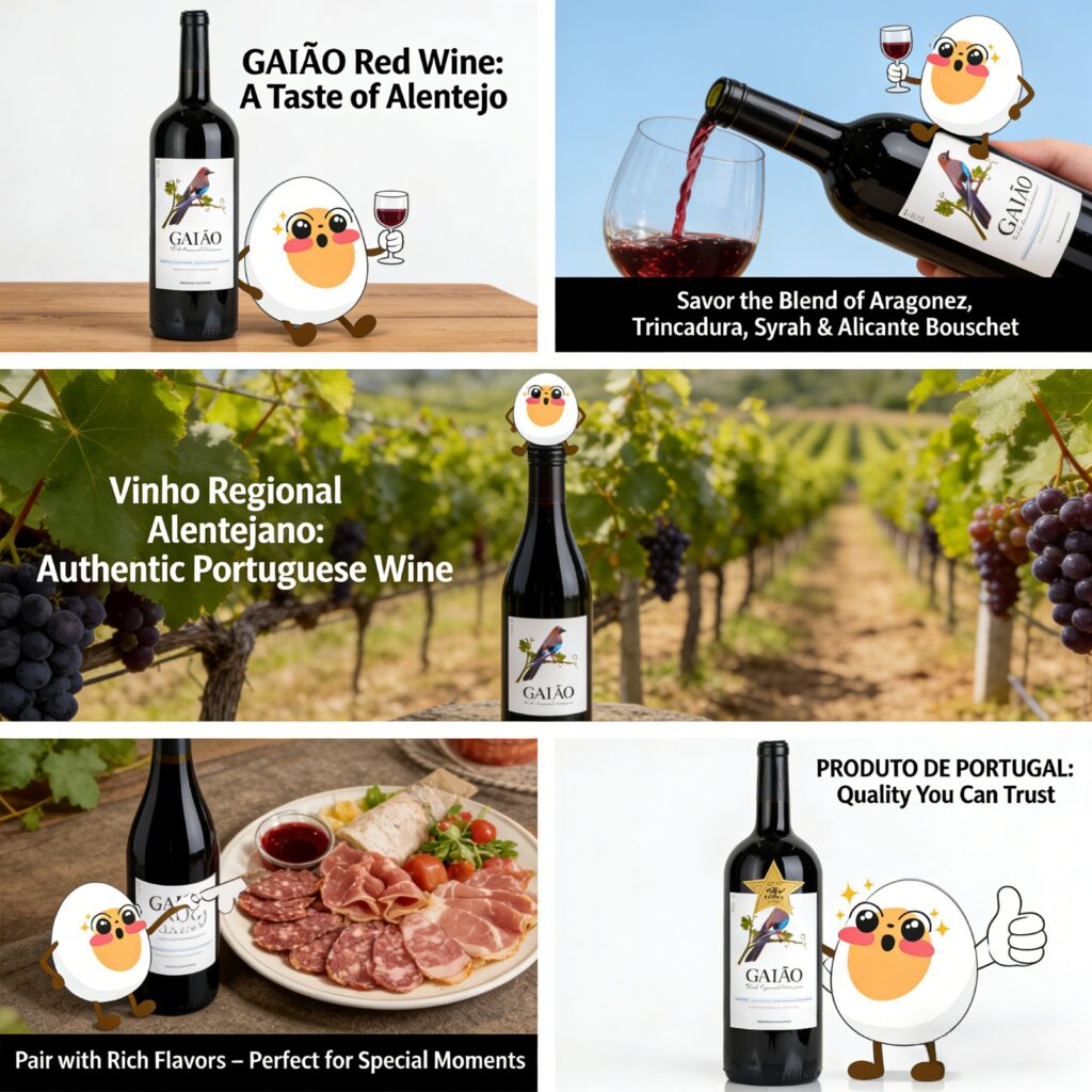 每一瓶 Gaião 紅酒都背負著 「PRODUTO DE PORTUGAL」 的印記,這是葡萄牙原裝進口的承諾,也是對品質的絕對自信。從陽光照耀的葡萄園到您的酒杯,我們堅持把最純正的葡萄牙風味原封不動地送到您手中。